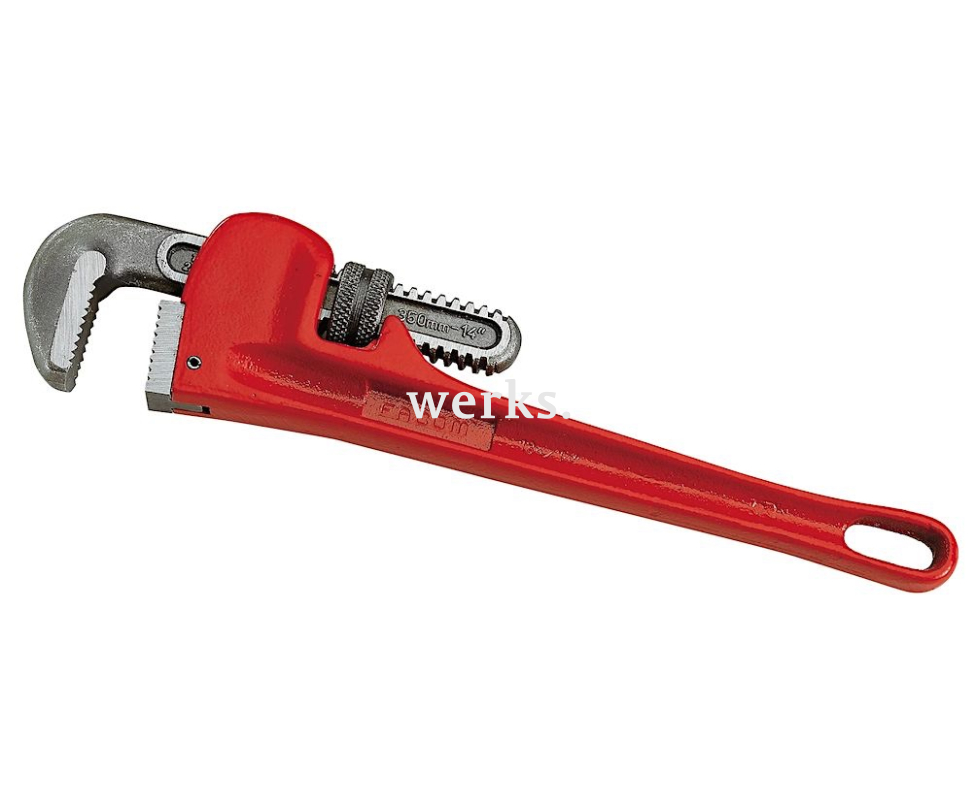 Надежный трубный ключ Facom Leader американского типа с углом наклона головки 90° и длиной 610 мм (24 дюйма) имеет регулируемый захват гаек в диапазоне до 102 мм. Изготовлен из кованого чугуна. Стальные кованые рабочие губки дополнительно закалены до твердости HRC 55, что обеспечивает надежный захват деталей. Обработан методом порошкового напыления.