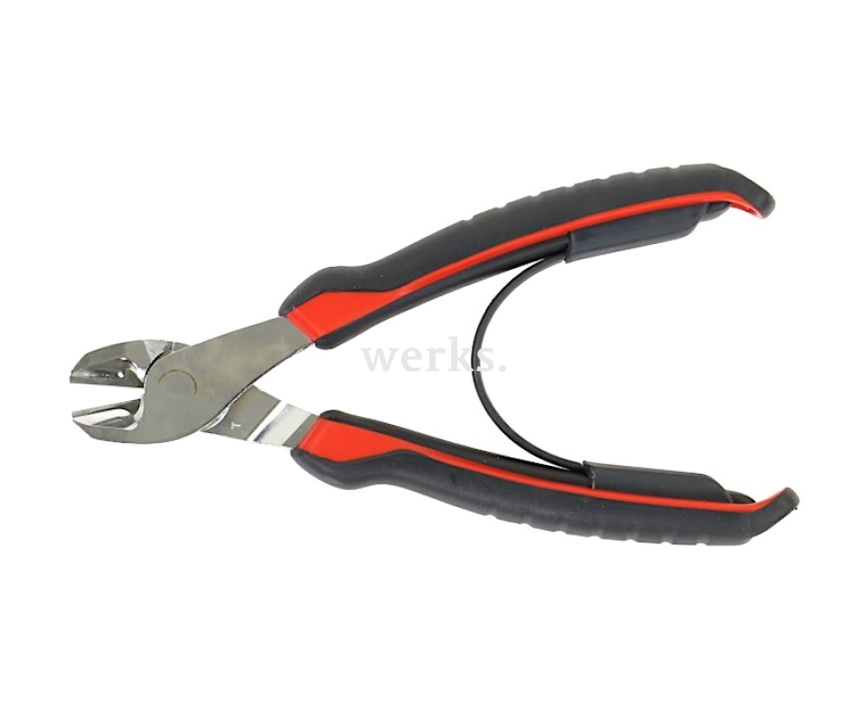 Силовые бокорезы длиной 180 мм изготовлены из высокопрочной хром-ванадий-молибденовой стали с хромированным покрытием. Ширина головки составляет 26 мм, толщина - 11 мм, а длина губок - 20 мм. Режущие кромки обработаны с высокой точностью и индуктивно закалены до твердости HRC 61-63, что позволяет выполнять аккуратную резку различных типов проволоки, включая рояльную струну диаметром 2,2 мм. Процесс резки требует минимальных усилий благодаря увеличенному плечу рычага и смещенной оси. Инструмент оснащен съемной возвратной пружиной. Двухкомпонентные рукоятки, устойчивые к химическим воздействиям, обеспечивают удобство в использовании.