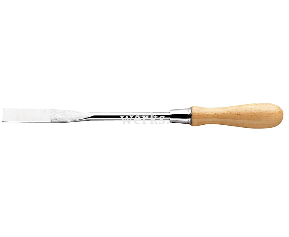 Профессиональный плоский шабер Facom длиной 200 мм и весом 185 г. Лезвие выполнено из высококачественной стали, с хромированным и полированным покрытием. Ширина рабочей части составляет 30 мм. Рукоятка изготовлена из прочного лакированного дерева. Этот инструмент предназначен для удаления заусенцев и клеевых швов с металлических поверхностей и их кромок. Он является незаменимым в области металлообработки.