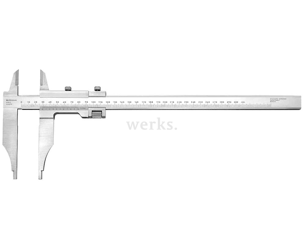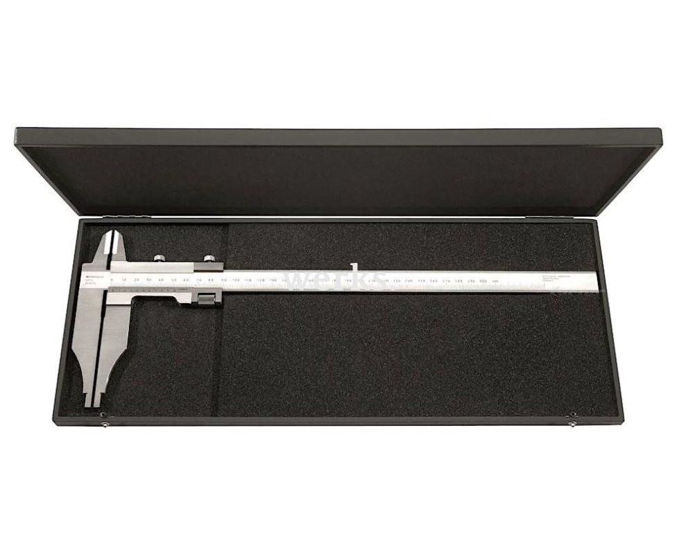 Диапазон измерений составляет от 0 до 300 мм. Изготовлен из нержавеющей стали с твердостью выше HRC 40 и имеет матовую поверхность. Лазерная шкала в миллиметрах устойчива к воздействию агрессивных химических веществ. Размер шага равен 0,02 мм или 1/50'. Длина измерительных губок составляет 100 мм. Подходит для внутренних и внешних измерений (отверстия более 10 мм). Оснащен прецизионным регулировочным винтом для надежной фиксации верньера. Это точный и надежный инструмент для высокоточных измерений. Поставляется в удобном кейсе с сертификатом соответствия.