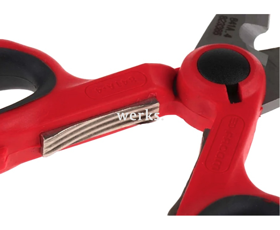 Профессиональные прямые ножницы Facom длиной 143 мм и весом 80 г. Лезвия длиной 45 мм выполнены из нержавеющей стали с титановым покрытием и имеют полированную поверхность, а также оснащены резаком для провода. Двухкомпонентные ручки обеспечивают надежное сцепление. Рукоятки подходят как для правшей, так и для левшей. Этот инструмент гарантирует аккуратную и точную резку различных материалов, включая одно- и многожильные провода, что делает его идеальным выбором для профессиональных электриков.
