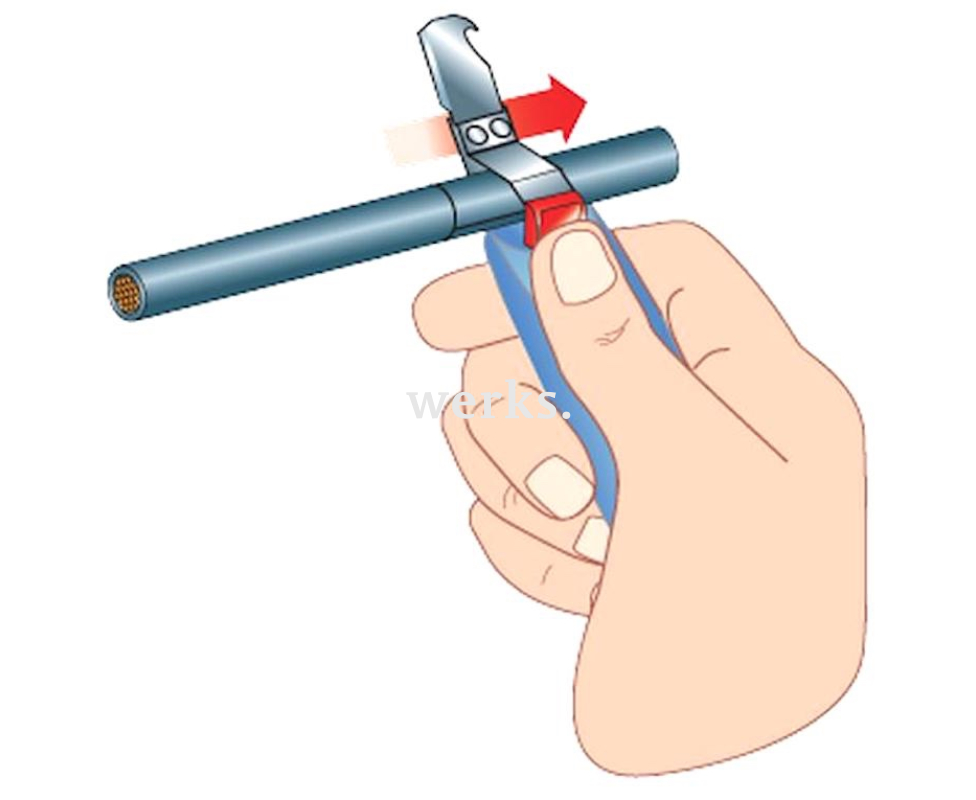 С инструментом, оснащенным лезвием с автоматическим поворотом, удобным регулировочным колесом и эргономичным плунжером 'редуктор усилия'. Подходит для снятия изоляции с проводов диаметром до 16 мм. Включает запасное лезвие, которое хранится в корпусе инструмента. Изготовлен из полимера, усиленного стекловолокном.