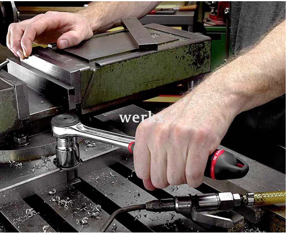 Изготовлен из прочной хромванадиевой стали с хромированным покрытием. Компактная головка защищена от пыли. Изменение направления вращения осуществляется поворотом крышки. Быстрая и простая замена насадок. Храповый механизм с 72 зубьями, угол возврата составляет 5°. Рукоятка с двухкомпонентным нескользящим покрытием, устойчивым к износу и агрессивным химическим веществам. В ручке предусмотрено отверстие для подвешивания при хранении и для страховочного троса при работе на высоте. Этот инструмент прост в обслуживании, надежен и удобен для авторемонтных мастерских и монтажников.