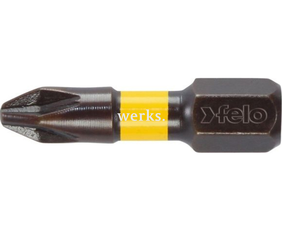 В комплект входят 5 бит с крестовым ударным профилем Pozidriv Felo Impact PZ3 длиной 25 мм.