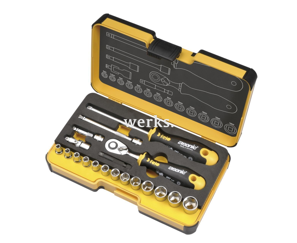 Набор торцевых головок с трещоткой и отверткой 1/4" Felo Ergonic 19 предметов 05781906