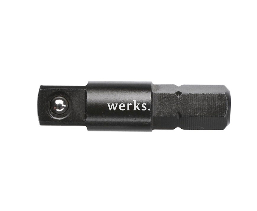 Адаптер-переходник с шариковым фиксатором, преобразующий шестигранник 1/4' в квадрат 1/4', предназначен для держателя сменных жал Smart. Формат стержня С 6,3. Изготовлен из хром-ванадий-молибденовой стали 9ХС.