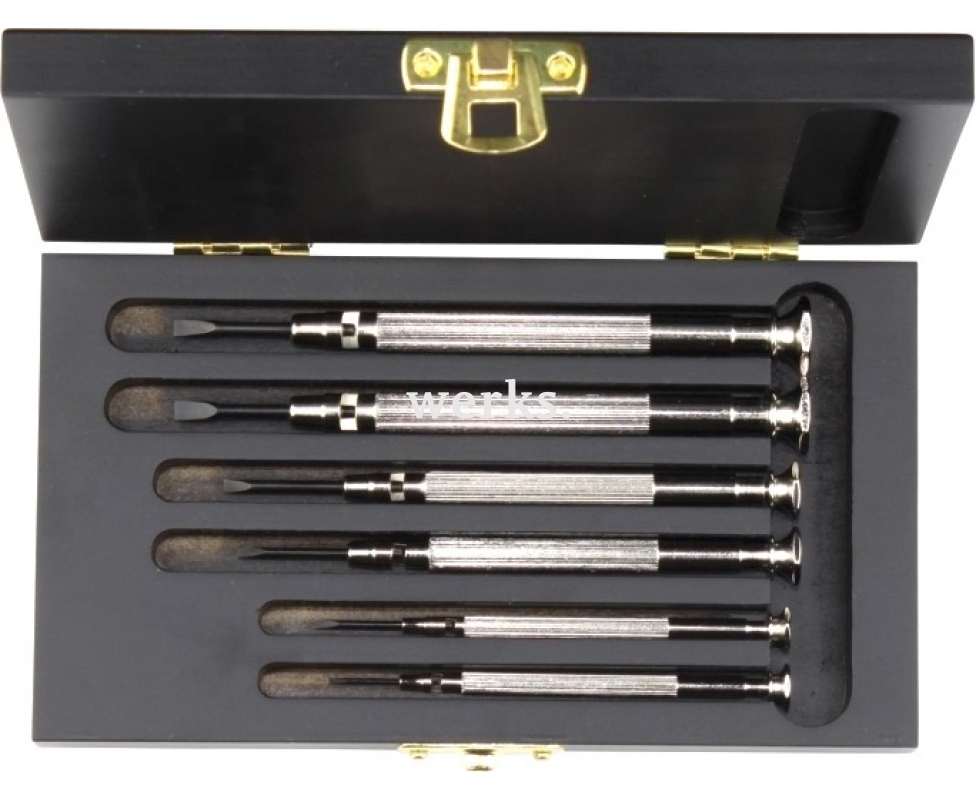 Комплект из 6 высокоточных шлицевых отверток для часов с вращающейся крышкой.