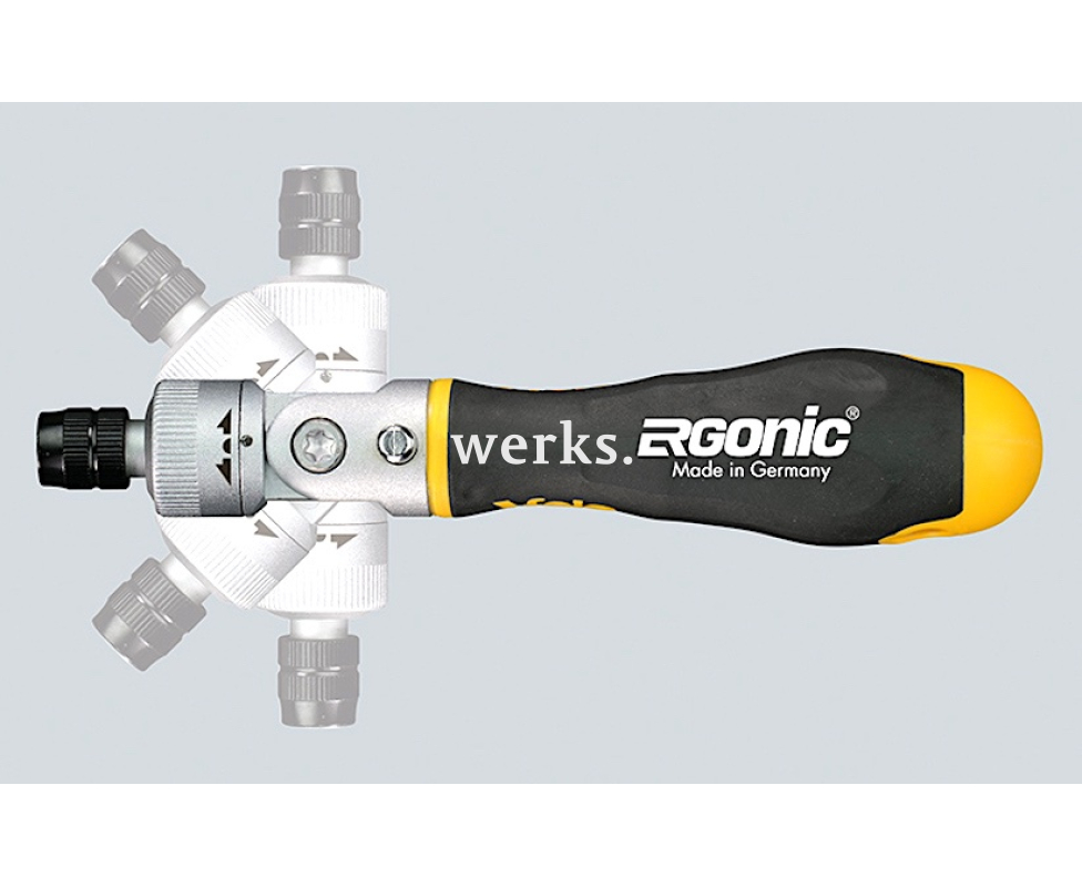 Для ручных вставок и аксессуаров с хвостовиком 1/4 дюйма. Головка вращается на 180 градусов. Обеспечивает надежную механическую фиксацию бит. Уникальная нескользящая многокомпонентная рукоятка ERGONIC с амортизирующим эффектом подстраивается под руку пользователя, что гарантирует отличную передачу крутящего момента. Прочный храповой механизм с 48 мелкими зубьями и углом возврата 6 градусов. Идеально подходит для применения в промышленности и автосервисах.