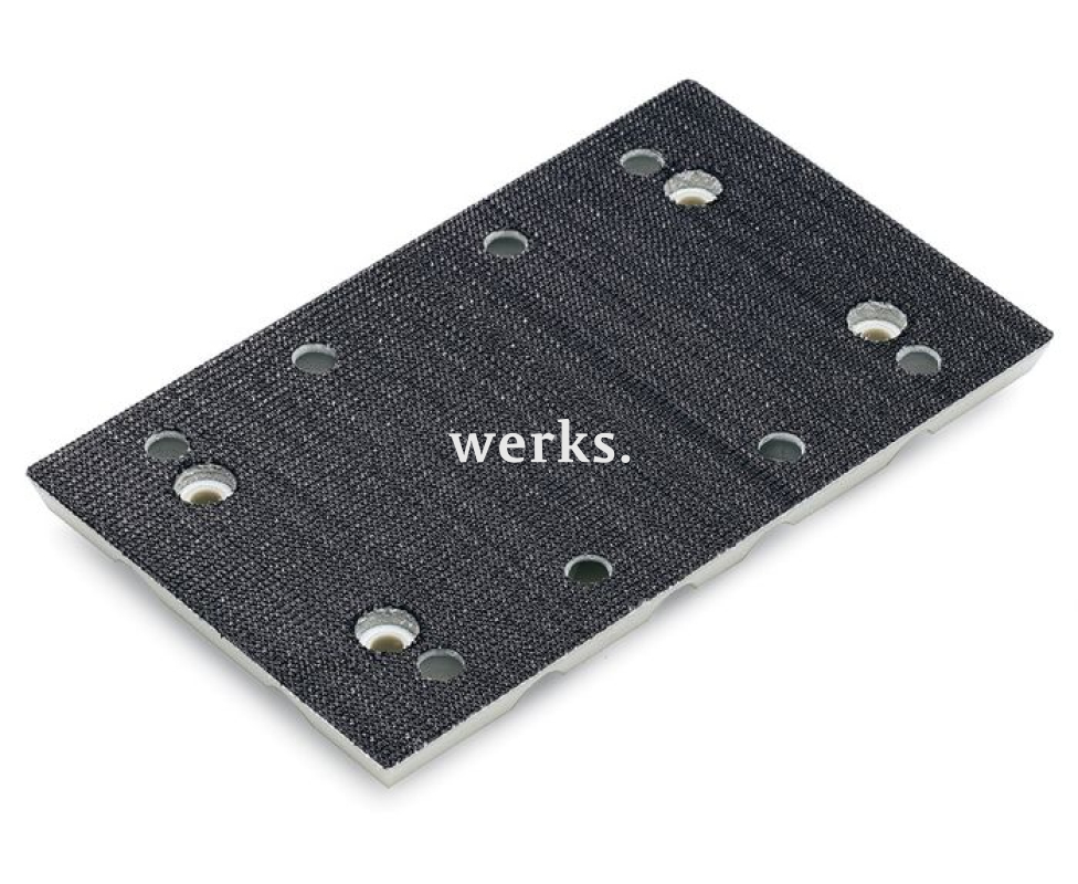 Опорная шлифовальная пластина с креплением шлифовальных элементов на 'липучке' и размерами 80 x 130 мм Flex SP 80x133-8F (FL) 436305. Обеспечивает эффективное удаление пыли благодаря дополнительным отверстиям. Обладает высокой износостойкостью. Совместима с виброшлифмашиной Flex OSE 80-2.