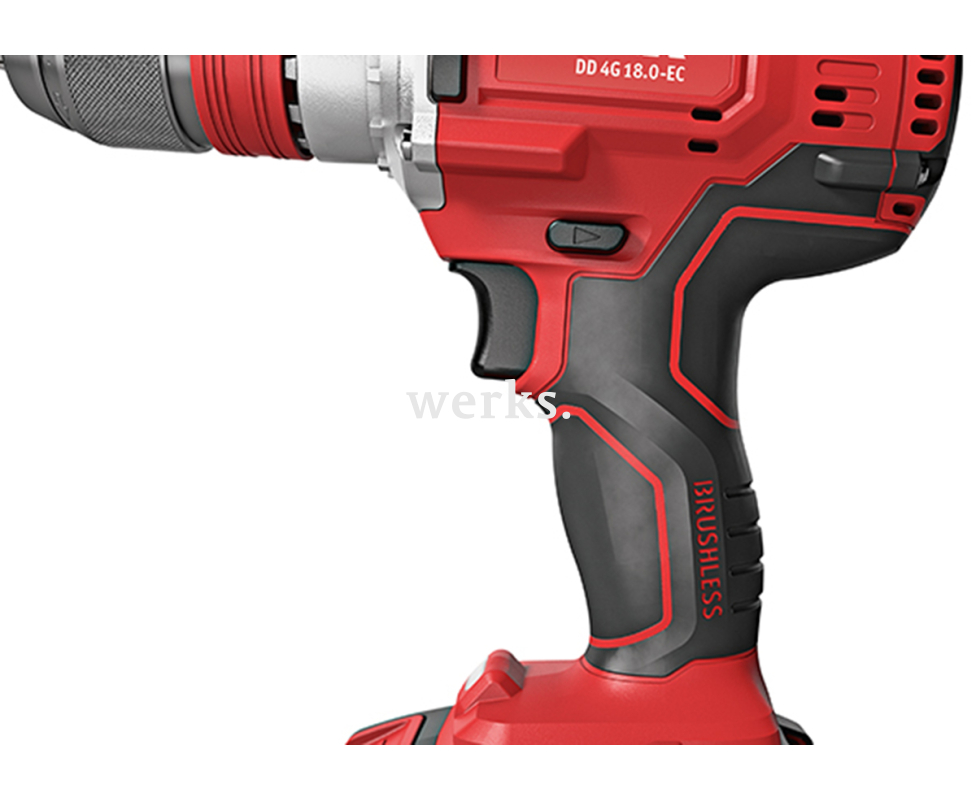 Профессиональный аккумуляторный шуруповерт DD 4G 18.0-EC C Flex 491292 с четырьмя скоростями, напряжением 18 В и максимальным крутящим моментом 135 Нм. Оснащен бесщеточным двигателем, который обеспечивает высокий КПД и длительный срок службы. Имеет 4-ступенчатый редуктор с максимальной скоростью до 4200 об/мин для оптимальной работы при сверлении и закручивании. Быстрый электронный тормоз. Металлический патрон с быстрозажимом, функцией автоблокировки и возможностью снятия без использования инструмента. Функция «Anti-Kickback» отключает двигатель при блокировке резьбовых соединений и отверстий, предотвращая вывих запястья. Встроенная светодиодная подсветка и индикатор уровня заряда аккумулятора. В комплект входит съемная дополнительная ручка, клипса для ремня и держатель для бит. Аккумулятор и зарядное устройство не включены в комплект.