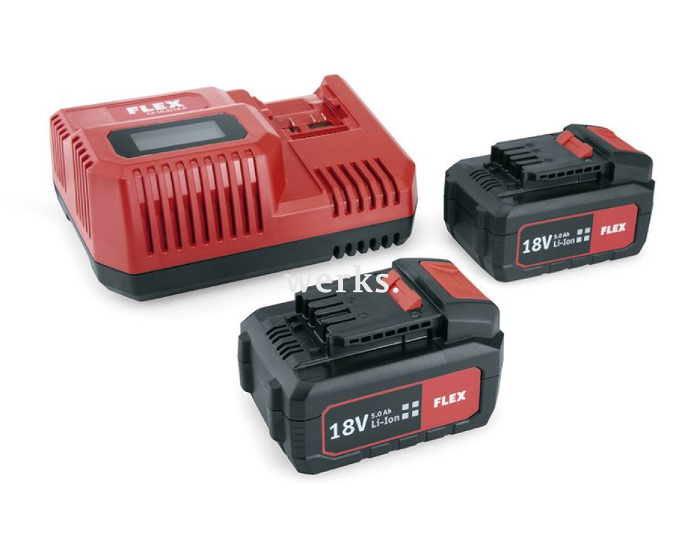 Набор аккумуляторного инструмента P-Set 55 R Flex 491349 включает в себя два аккумулятора Flex с напряжением 18 В и емкостью 5 А/ч, а также зарядное устройство Flex CA 10.8/18.0, которое поддерживает зарядку аккумуляторов как на 10.8, так и на 18 Вольт с любой емкостью.