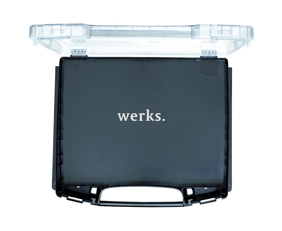 Пластиковый ящик с прозрачной крышкой размером 367 × 316 × 72 мм, оснащенный ручкой для удобного хранения мелких предметов. Идеально подходит для системы хранения Gedore i-BOXX модели 1101 K.