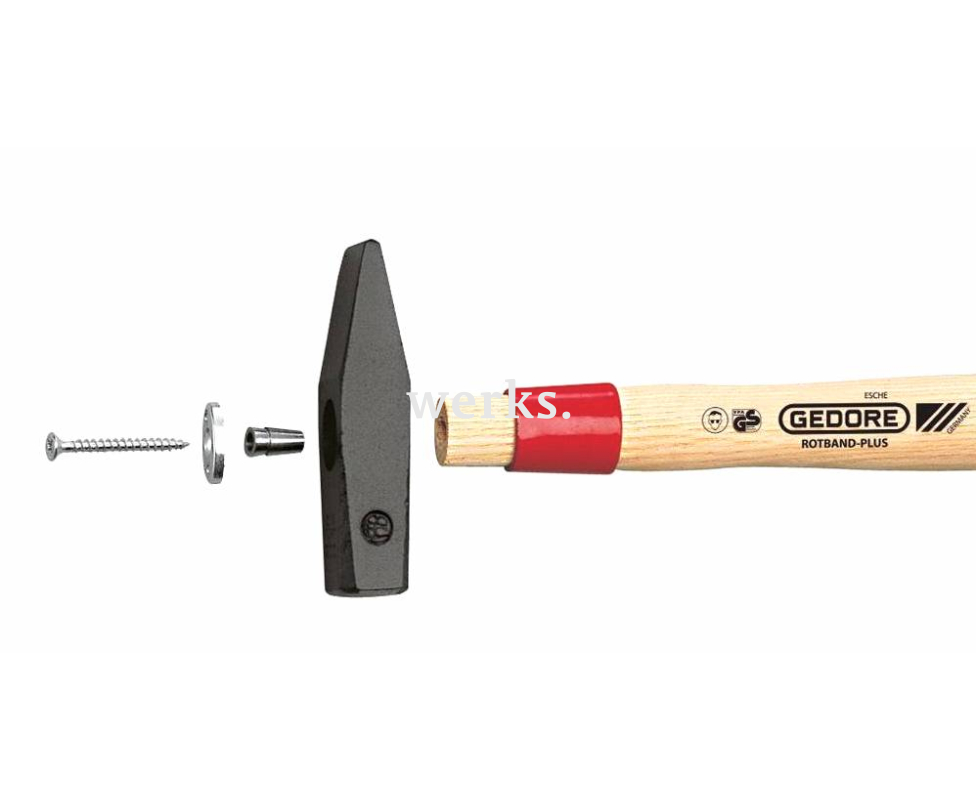 Профессиональный слесарный молоток 600 IH-800 ROTBAND-PLUS длиной 350 мм от Gedore, весом 1135 г и с бойком массой 800 г. Края рабочей поверхности бойка подверглись индуктивной закалке с использованием высокочастотных токов. Это высококачественный инструмент немецкого производства, предназначенный для повседневного применения. Он отлично подходит для различных слесарных и столярных задач.