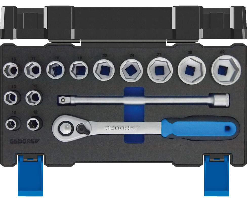 Набор торцевых головок 1/2" 15шт, шестигранные 10-32мм Gedore 3014347