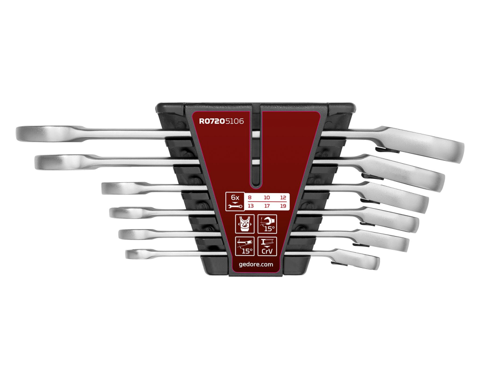 Гребень.трещотка пролет.набор рев. 8-19мм 6шт Gedore 3301084