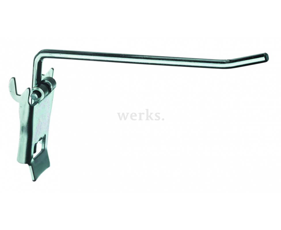 Однократный складной крючок-держатель длиной 120 мм, изготовленный из прочной оцинкованной стальной проволоки диаметром 4,8 мм, предназначен для крепления на вертикальных поверхностях. Идеально подходит для организованного хранения ручного инструмента.