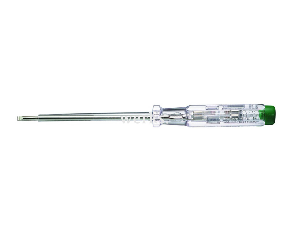 Инструмент для проверки напряжения в электрической сети. Габариты - 0,5 x 3,5 x 100 мм. Жало с никелевым покрытием. Прозрачная рукоятка с встроенным светодиодом.