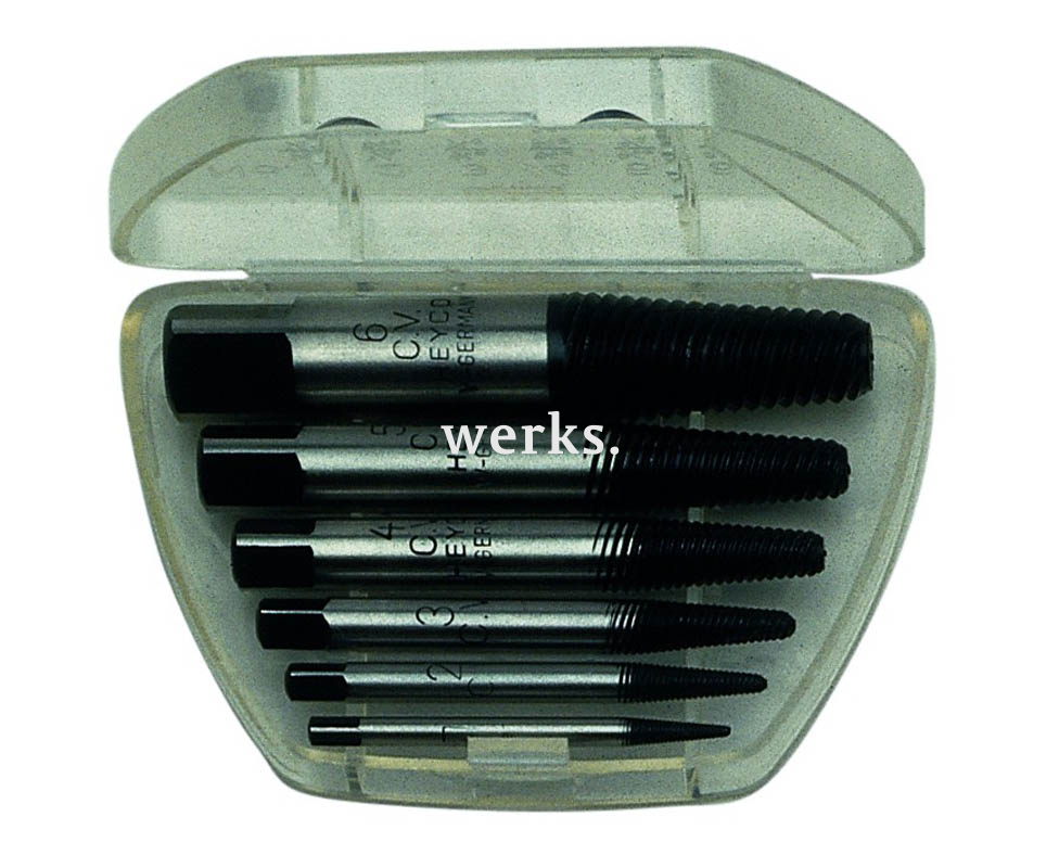 Комплект из 5 экстракторов (M3-М18) предназначен для извлечения сломанных винтов и болтов с правой резьбой. Изготовлены из хромованадиевой стали и поставляются в удобном пластиковом кейсе.
