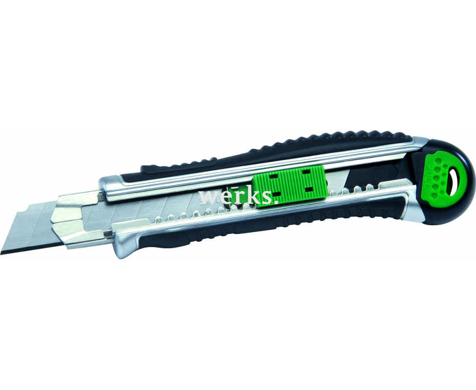 Корпус и лезвия ножа выполнены из прочного цинкового сплава, полученного методом литья под давлением. Лезвия легко заменяются. Обеспечивается надежная фиксация лезвий в рабочем состоянии. Этот универсальный нож подходит для монтажных и ремонтных задач. Ширина лезвия составляет 18 мм.