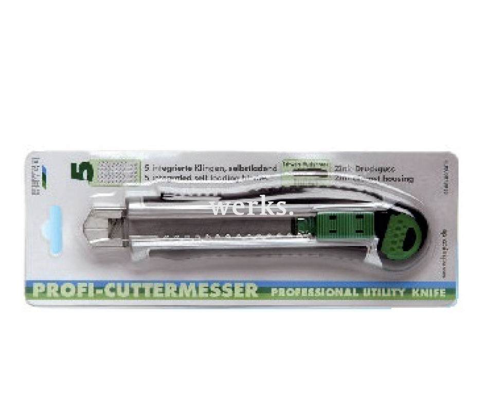 Корпус и лезвия ножа выполнены из прочного цинкового сплава, полученного методом литья под давлением. Лезвия легко заменяются, обеспечивая надежную фиксацию в рабочем состоянии. Этот универсальный нож идеально подходит для монтажных и ремонтных задач. Ширина лезвия составляет 18 мм. Продается в блистерной упаковке и включает 5 сменных лезвий.