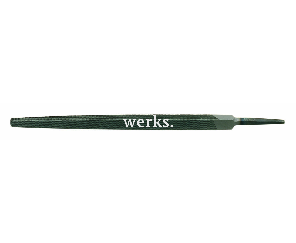 Трехгранный профессиональный напильник Heyco HE-01677025000 длиной 250 мм и массой 335 г. Он выполнен из прочной хромванадиевой стали и обладает долговечной прецизионной насечкой.
