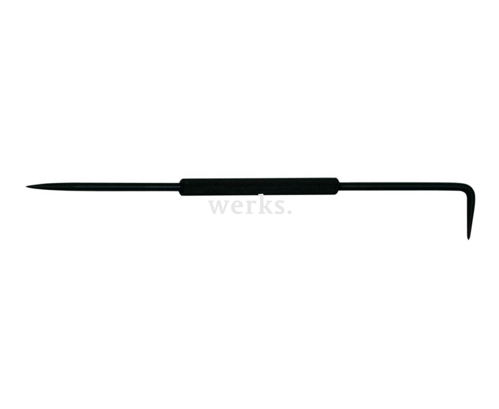 Двусторонний инструмент для черчения длиной 250 мм, изготовленный из хромванадиевой стали с черным покрытием. Оснащен эргономичной ручкой для комфортного захвата. Используется для создания разметки на металлических поверхностях.