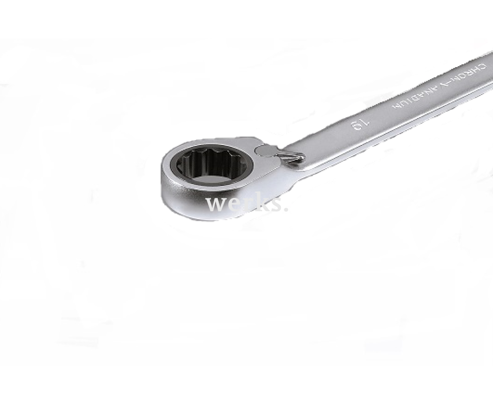 Ключ гаечный трещоточный комбинированный 12 мм Heyco HE-50725012080 длиной 170 мм обладает высокой эффективностью. Он выполнен из закаленной хромванадиевой стали и полностью хромирован. Угол наклона кольцевой головки относительно поперечной оси инструмента составляет 15°, а угол наклона рожковой головки по отношению к продольной оси также равен 15°.