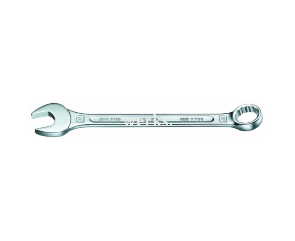 Ключ гаечный комбинированный 27 мм Heyco HE-50810027080, длина которого составляет 310 мм, выполнен из хромованадиевой стали и имеет полное хромированное покрытие. Угол наклона кольцевой части инструмента относительно его оси составляет 15°, а угол наклона рожковой части также равен 15°.