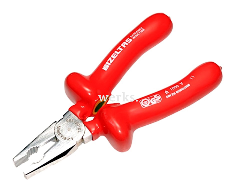 Электроизолированные плоскогубцы Izeltas длиной 180 мм и весом 315 г оснащены индукционно закаленными режущими кромками. Они прошли испытания на соответствие стандартам VDE. Изготовлены из высококачественной легированной инструментальной стали и имеют хромированное покрытие. Эти плоскогубцы идеально подходят для захвата, скручивания, резки проволоки и проводов, а также для удержания деталей. Инструмент отличается повышенной прочностью и оснащен нескользящими диэлектрическими рукоятками. Это профессиональный инструмент, безопасный для работы с узлами и деталями под напряжением до 1 000 В переменного тока.