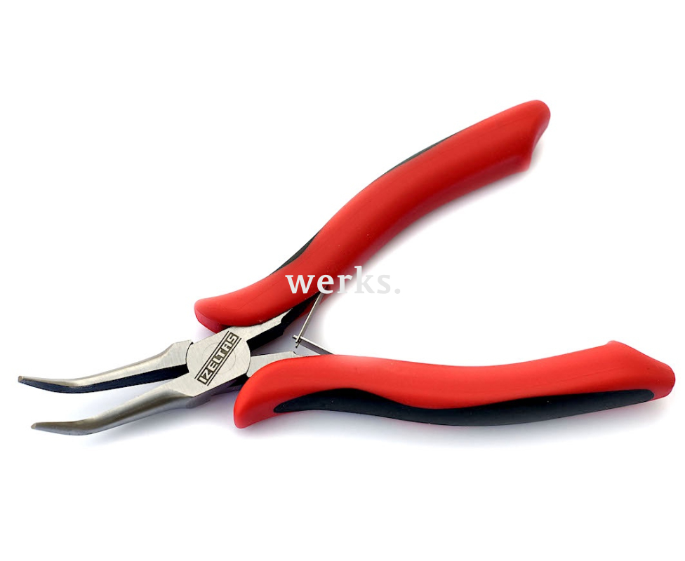 Прецизионные плоскогубцы Izeltas имеют длину 160 мм и вес 110 г. Они оснащены тонкими, удлиненными изогнутыми губками и двойной пружиной для раскрытия. Изготовлены из высококачественной хромванадиевой стали, имеют оксидированное и лакированное покрытие. Рукоятки снабжены двухкомпонентными нескользящими чехлами. Эти плоскогубцы идеально подходят для работы с проводами, установки компонентов на плату и выполнения других задач в области электроники и точной механики, включая труднодоступные места.