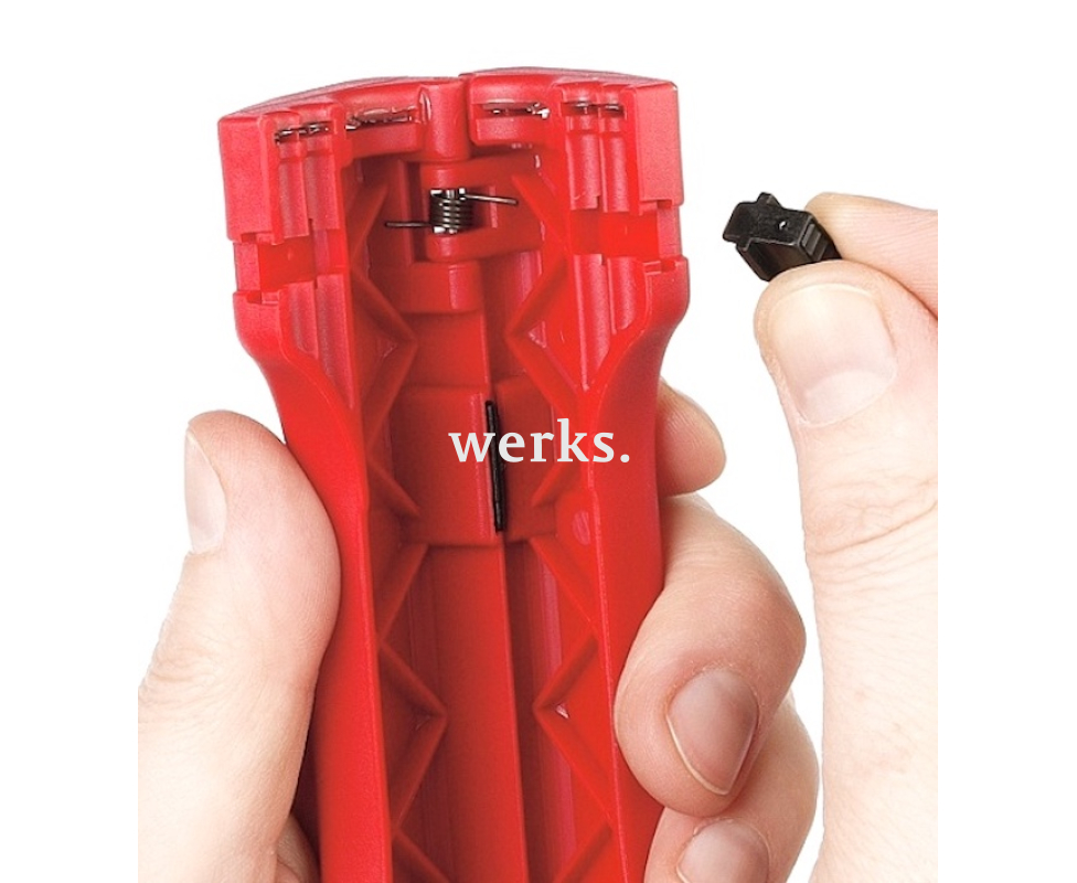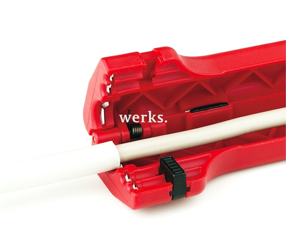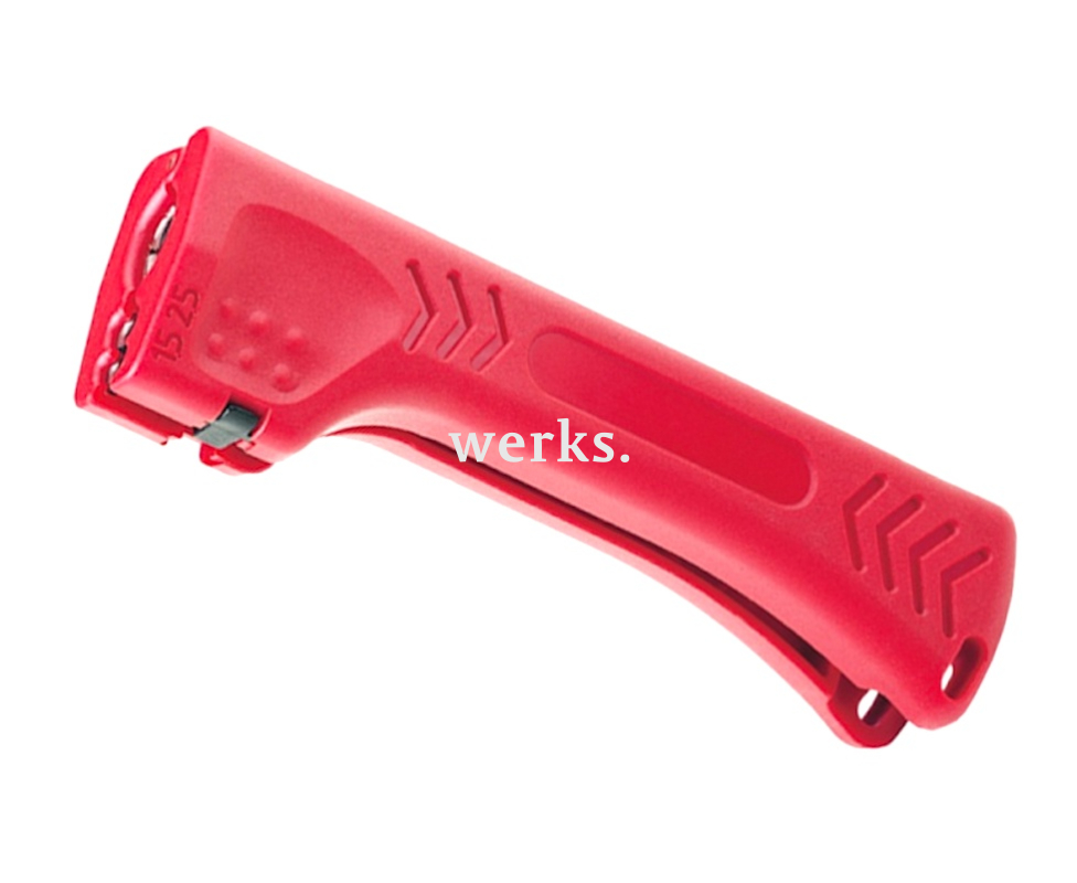 Инструмент предназначен для быстрого и аккуратного удаления оболочки с различных типов круглых кабелей диаметром от 8 до 13 мм. Корпус выполнен из высокопрочного полиамида, что обеспечивает его долговечность. Настройка глубины реза не требуется — лезвие с покрытием TiN автоматически адаптируется к размеру кабеля, при этом внутренние гибкие жилы остаются неповрежденными. Также имеются лезвия для снятия изоляции с проводников сечением от 1,5 до 2,5 мм². Этот инструмент идеально подходит для работы в ограниченных пространствах. JK 30400