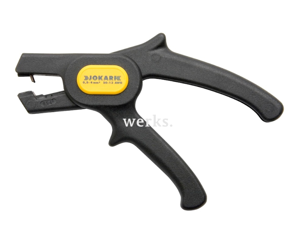 Автоматические клещи предназначены для быстрого и точного удаления изоляции с одножильных и многожильных проводов, имеющих различные типы оболочки и сечением от 0,5 до 4 мм² (13 до 20 AWG). Настройка инструмента под конкретное сечение не требуется. Они не повреждают внутренние гибкие жилы. Корпус выполнен из прочного полиамида, армированного стекловолокном. Устройство оснащено регулируемым упором для продольной подачи кабеля в диапазоне 8 - 12 мм. Встроенные кусачки позволяют обрезать провода диаметром до 2,0 мм. Легкий вес, узкие концы и компактные размеры делают этот инструмент идеальным для работы в ограниченных пространствах. JK 20041