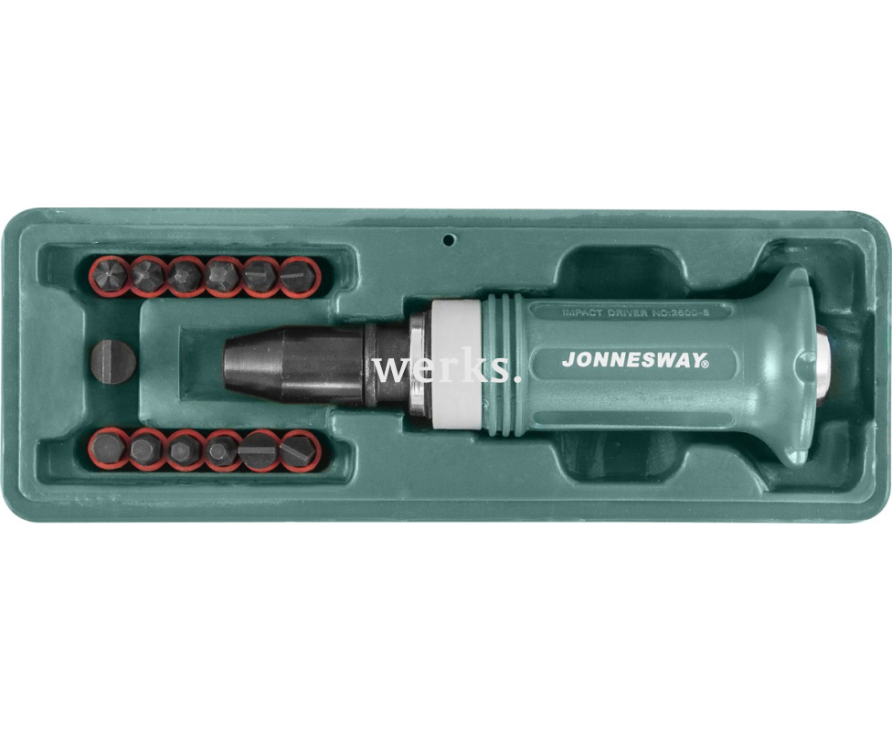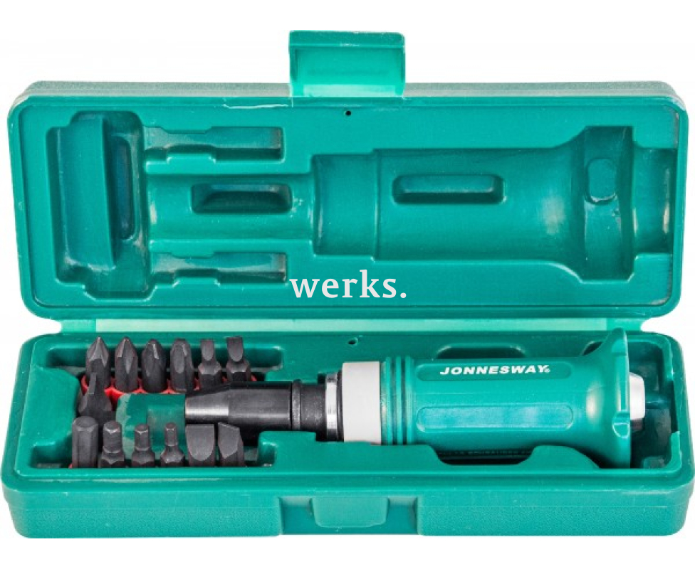 Ударная отвертка с набором бит SL 5,6,8,10,12мм PH# 1,2,3,4 Hex 4,5,6,8, 14 предметов Jonnesway AG010138
