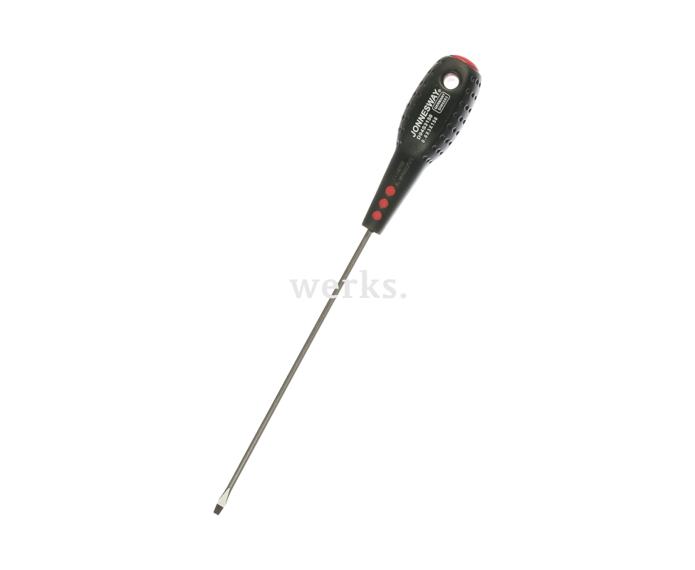 Отвертка шлицевая SL 3 с длиной жала 150 мм. Эта стержневая отвертка из популярной серии JONNESWAY «FULL STAR» создана в соответствии с требованиями стандарта DIN 5262 и соответствует техническим условиям ГОСТ 17199-88. Инструмент оснащен высококачественным стержнем из хромомолибденованадиевой стали, а намагниченная рабочая часть позволяет удерживать крепеж, что особенно удобно при работе в труднодоступных местах. Рукоятка, выполненная из бензомаслостойкого АБС пластика, комфортно лежит в руке.