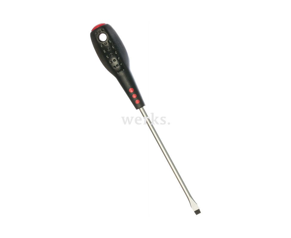 Отвертка шлицевая SL 5.5 с длиной жала 125 мм. Этот инструмент из популярной серии JONNESWAY «FULL STAR» создан в соответствии с нормами DIN 5262 и соответствует техническим требованиям ГОСТ 17199-88. Он оснащен высококачественным стержнем из хромомолибденованадиевой стали, а намагниченная рабочая часть позволяет удерживать крепеж, что особенно полезно при работе в труднодоступных местах. Рукоятка, выполненная из бензомаслостойкого АБС пластика, удобно лежит в руке.
