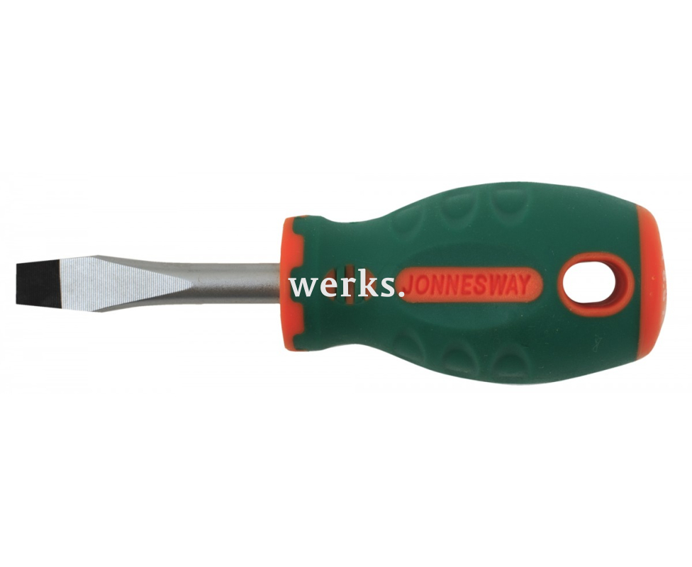 Отвертка шлицевая короткая SL 5.5 с длиной жала 38 мм. Инструменты серии 'D71' 'ANTI-SLIP GRIP' JONNESWAY производятся в соответствии с нормами DIN 5262 и соответствуют требованиям ГОСТ 17199-88. Намагниченные рабочие части, выполненные из кремнийхромованадиевой стали, надежно удерживают крепеж, что делает использование инструмента удобным в труднодоступных местах. Двухкомпонентная эргономичная рукоятка с мягким покрытием из сантопрен, устойчивым к нефтепродуктам и кислотам, обеспечивает надежный захват, практически исключая проскальзывание в руке пользователя.