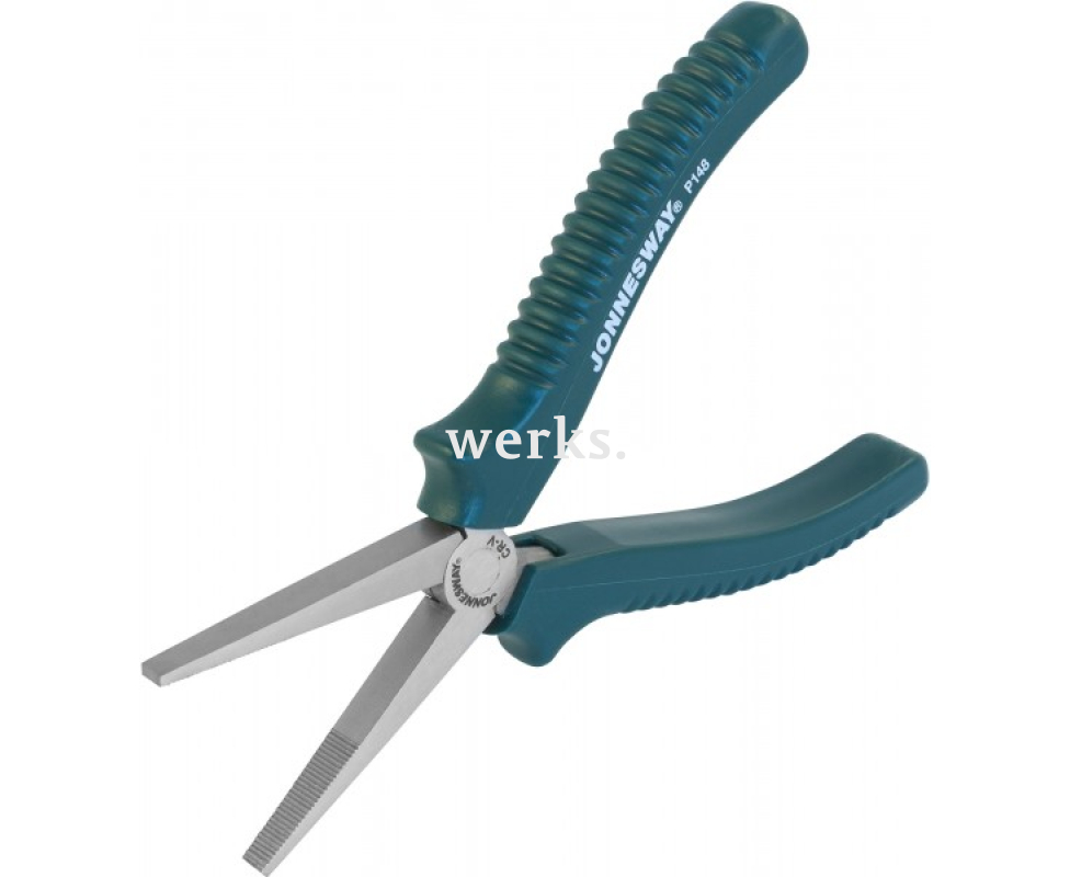 Инструмент с плоскими прямоугольными губками, предназначенный для работы с плоскими объектами, обеспечивает надежный захват на большой площади. Плоскогубцы изготовлены из хромованадиевой стали и имеют матовое хромоникелевое покрытие. Они оснащены полимерными накладками на рукоятках, весят 200 граммов и имеют длину 200 мм. Изготовлены в соответствии со стандартом ISO 5743-88, что соответствует ГОСТу 7236-93.