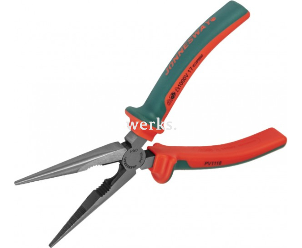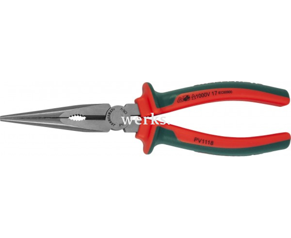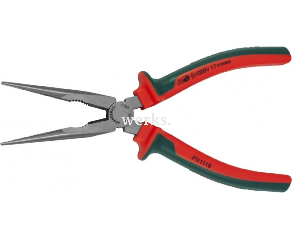 Длинногубцы диэлектрические VDE прямые с двухкомпонентными рукоятками 200 мм Jonnesway PV1118