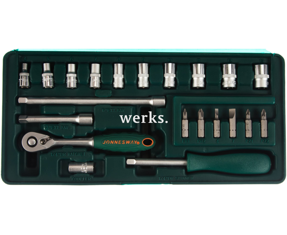 Набор торцевых головок с битами, с трещоткой, квадрат 1/4"DR, 4-13 мм, 21 предмет Jonnesway S04H2721S