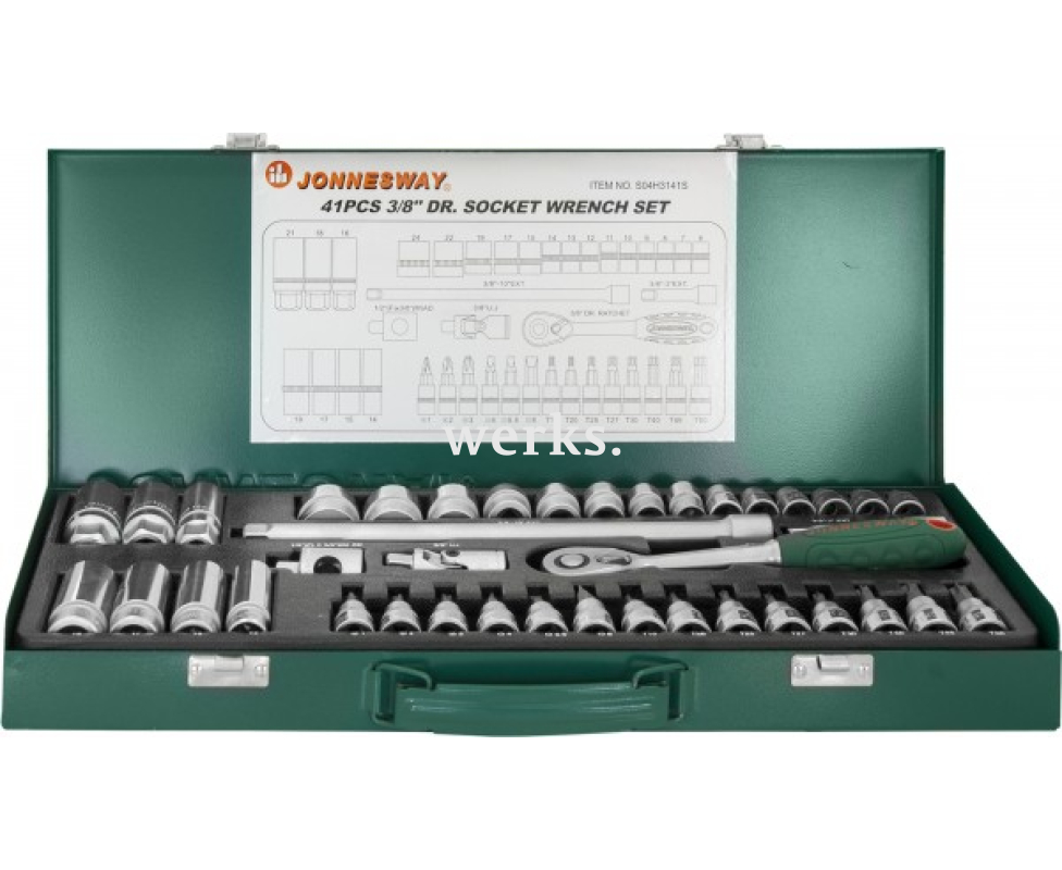 Набор торцевых головок с трещоткой, квадрат 3/8"DR, 6-24 мм, 41 предмет Jonnesway S04H3141S