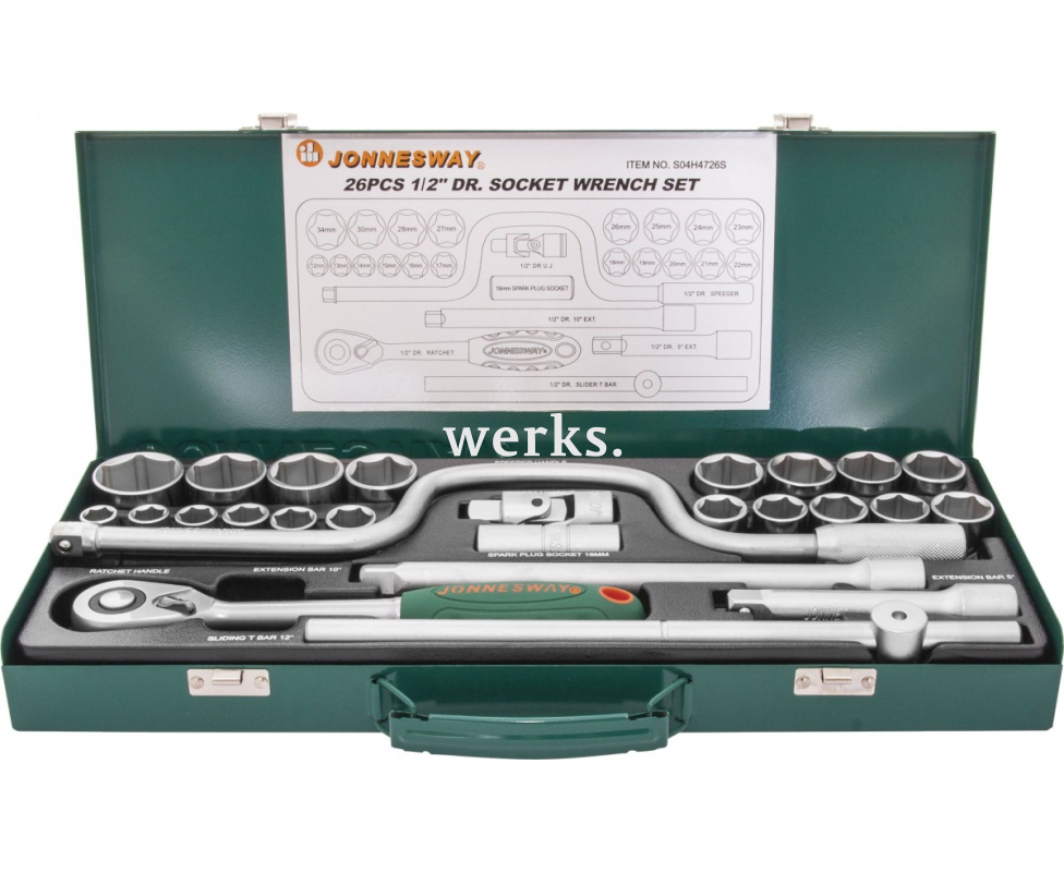Набор торцевых головок с трещоткой, квадрат 1/2"DR, 12-34 мм, 26 предметов Jonnesway S04H4726S