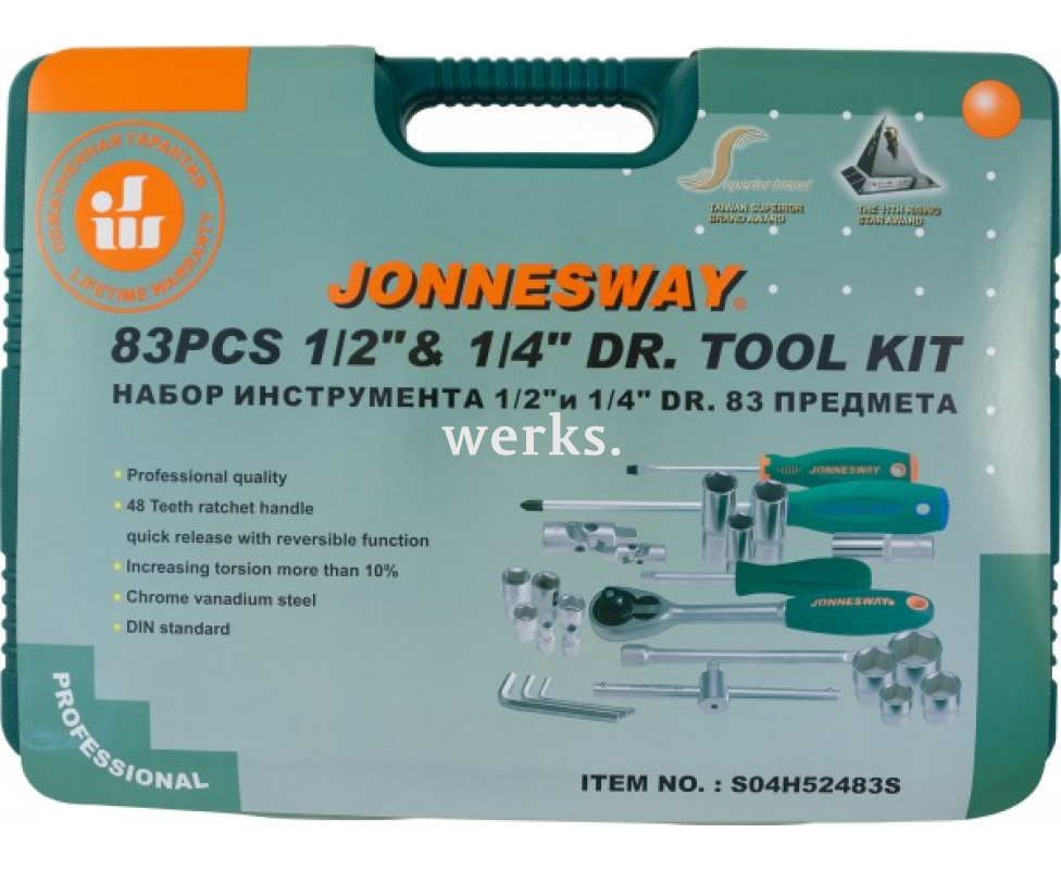 Набор инструмента универсальный 1/4", 1/2"DR 83 предмета Jonnesway S04H52483S