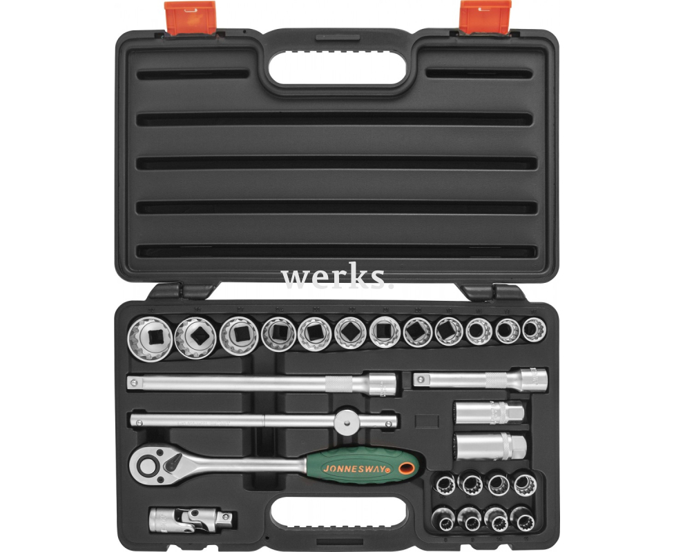 Набор торцевых головок с трещоткой, квадрат 1/2"DR Super Tech, 27 предметов Jonnesway S68H4127S
