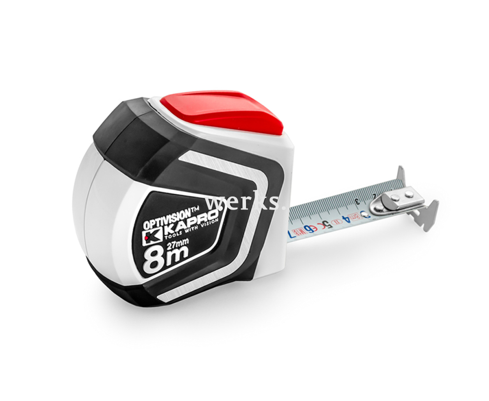 Измерительная рулетка Kapro 510-8M с двусторонней мерной лентой длиной 8 метров и шириной 27 мм. Встроенный мощный магнит в удобном крюке обеспечивает надежное крепление. Лента имеет износостойкое нейлоновое покрытие и может вытягиваться без заломов на расстояние более 2 метров. Устройство оснащено функцией автостопа, кнопкой возврата ленты и прочным корпусом, устойчивым к ударам. Чтение показаний удобно благодаря крупному шрифту и контрастной печати в трех цветах. Класс точности - II.