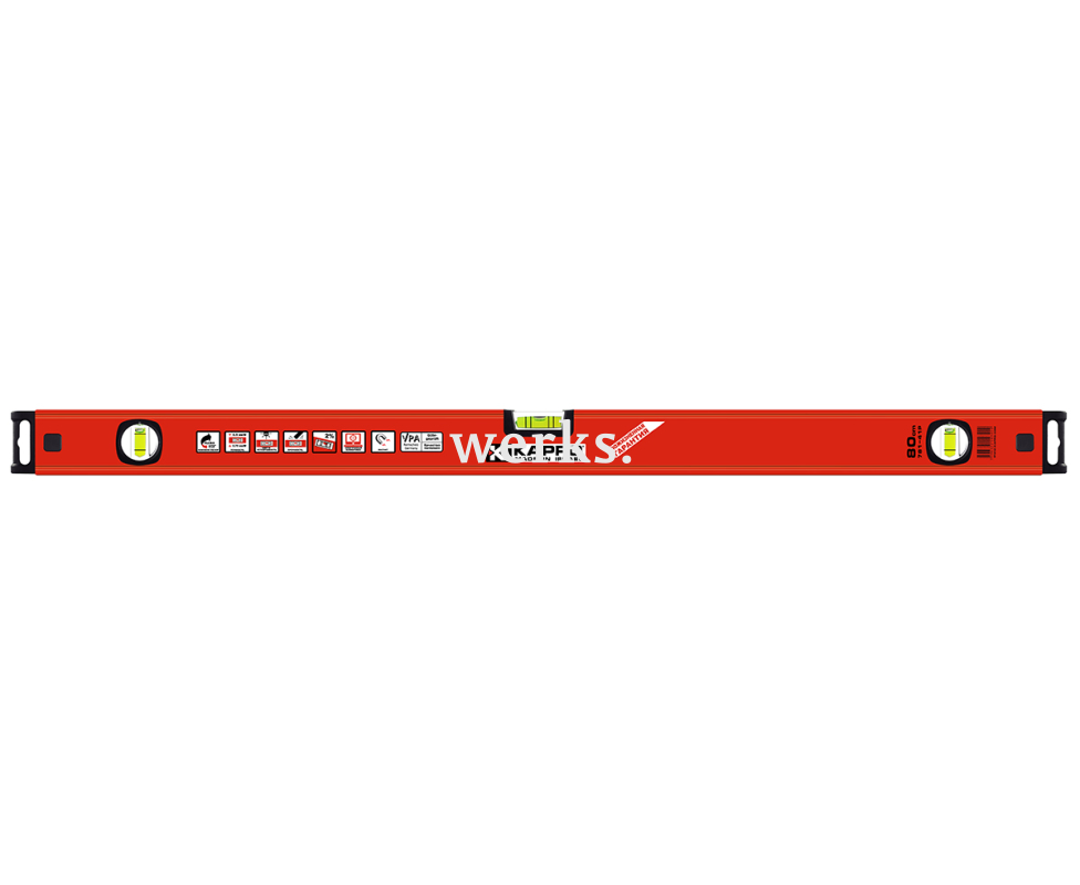 Пузырьковый строительный уровень длиной 80 см Kapro серии 781 Genesis 781-41-80PM. Оснащен двумя вертикальными пузырьковыми капсулами, одна из которых использует технологию двойного обзора Plumb Site Dual-View, а также горизонтальной камерой, позволяющей измерять отклонения до 2%. Обработанная рабочая поверхность включает мощные встроенные магниты, боковые ударопоглощающие заглушки и резиновые противоскользящие вставки. Максимальная погрешность составляет 0,5 мм/м, а в перевернутом состоянии не превышает 0,75 мм/м.
