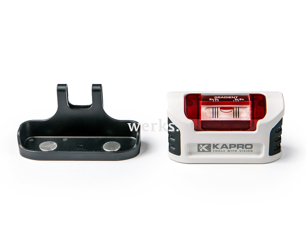 Компактный пузырьковый уровень длиной 10 см Kapro серии 946 Smarty 946M выполнен из литого алюминия. Он оснащен горизонтальной пузырьковой камерой с высокой контрастностью благодаря технологии Optivision и дополнительными насечками для определения отклонений до 2%. Рабочая поверхность обработана фрезерованием и включает мощные магниты из редкоземельных металлов. Уровень также имеет противоскользящие резиновые вставки. В комплект входит клипса для крепления на ремне. Погрешность составляет не более 0,5 мм/м.