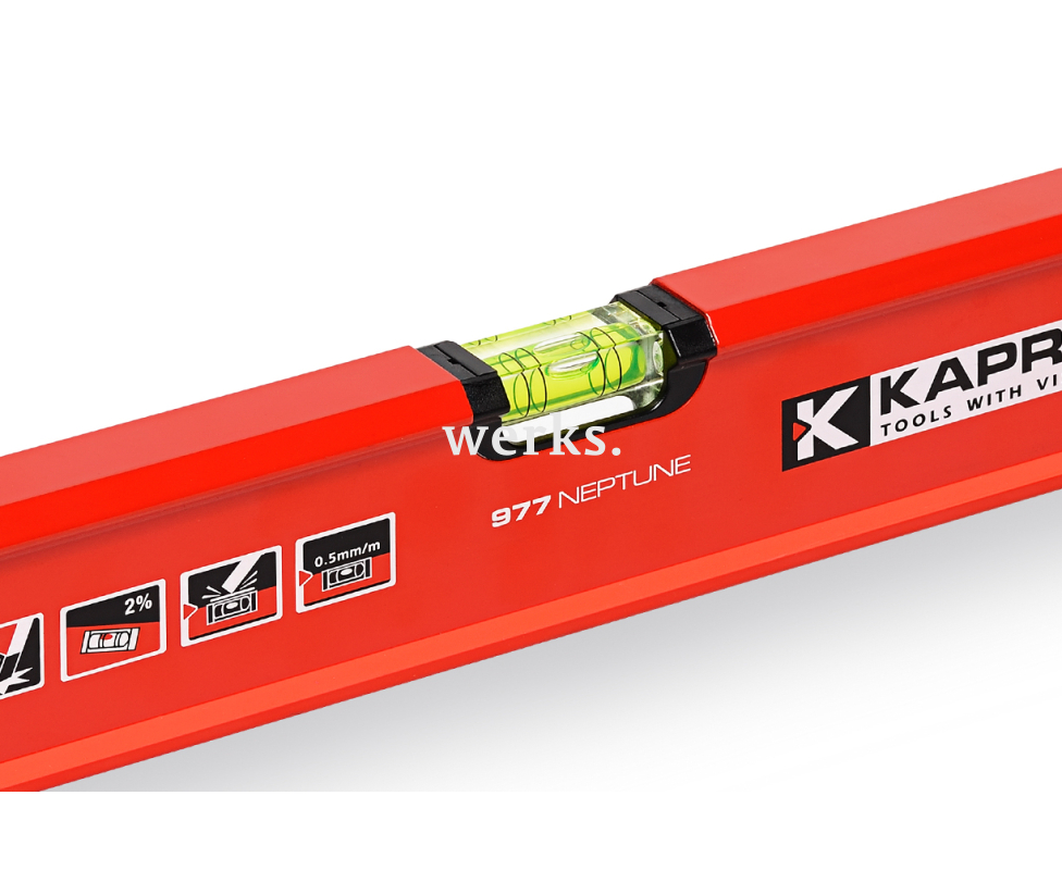 Строительный пузырьковый уровень Kapro серии 977 Neptune 977-40-40M имеет длину 40 см и допускает максимальную погрешность 0,5 мм/м. Он оборудован двумя прочными пузырьковыми камерами из полиакрила, расположенными вертикально и горизонтально, а также мощными магнитами из редкоземельных металлов. Увеличенные ребра жесткости обеспечивают дополнительную прочность профиля. Противоскользящие вставки и ударопоглощающие боковые заглушки повышают его функциональность. Рабочая поверхность обработана фрезерованием.