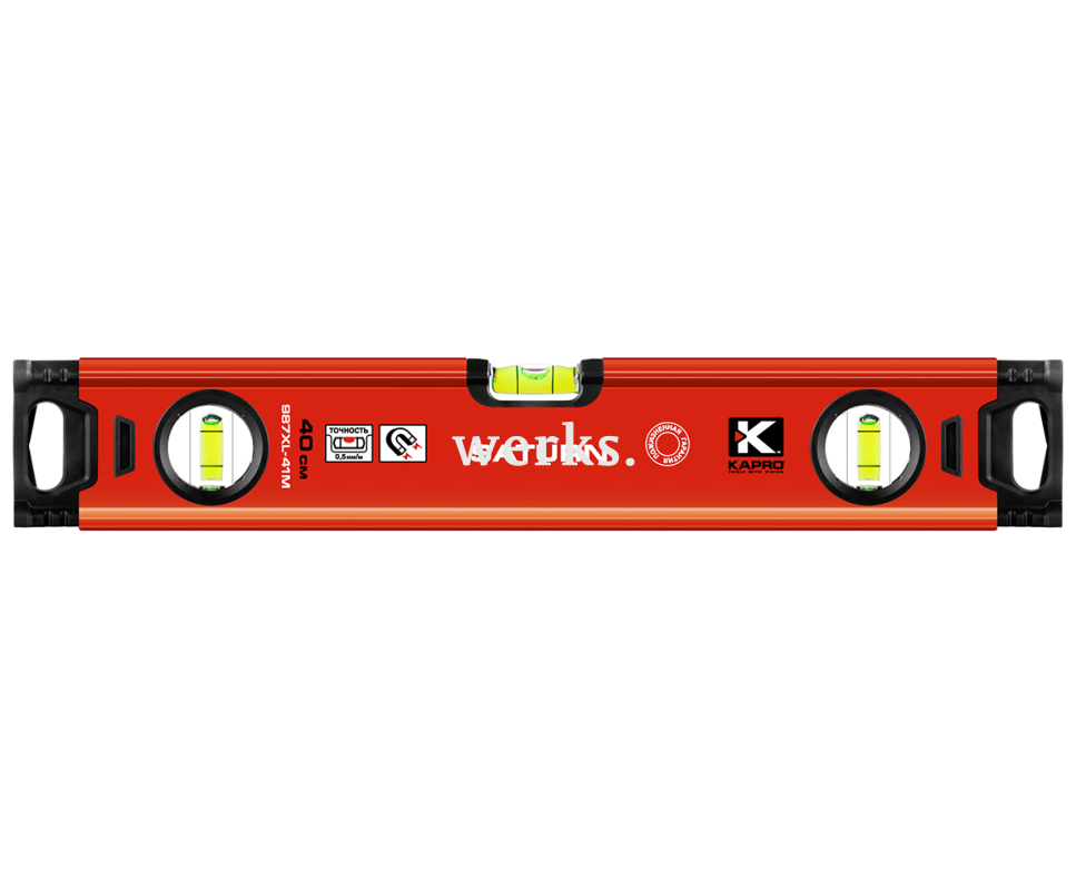 Строительный пузырьковый уровень Kapro серии 987XL Saturn 987XL-41-40M длиной 40 см. Оснащен двумя вертикальными и одной горизонтальной пузырьковыми капсулами, выполненными из полиакрила, что обеспечивает их высокую прочность. Фрезерованная рабочая поверхность включает мощные встроенные магниты. Корпус усилен ребрами жесткости, а противоскользящие элементы и амортизирующие торцевые заглушки добавляют удобства. Также предусмотрены отверстия для подвешивания. Максимальная погрешность составляет 0,5 мм/м.