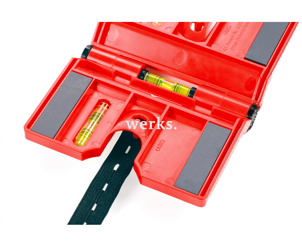 Угловой магнитный уровень Kapro Postrite 340-08 предназначен для легкого измерения углов и точной установки балок, опор и труб. Складной механизм фиксируется с шагом в 15°. Устройство оснащено четырьмя мощными магнитами для надежного крепления на металлических поверхностях и эластичным ремешком для фиксации на немагнитных материалах. Включает три пузырьковые камеры.