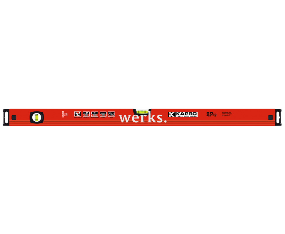 Строительный уровень Kapro 787-40-80, серия 787, предназначен для профессионального использования. Его погрешность составляет всего 0,5 мм на метр, а длина профиля достигает 80 см. Уровень оснащен пузырьковыми камерами, расположенными как вертикально, так и горизонтально. Боковые заглушки имеют амортизирующие свойства, а противоскользящие резиновые элементы обеспечивают надежное сцепление. Уровень можно подвешивать с обеих сторон.